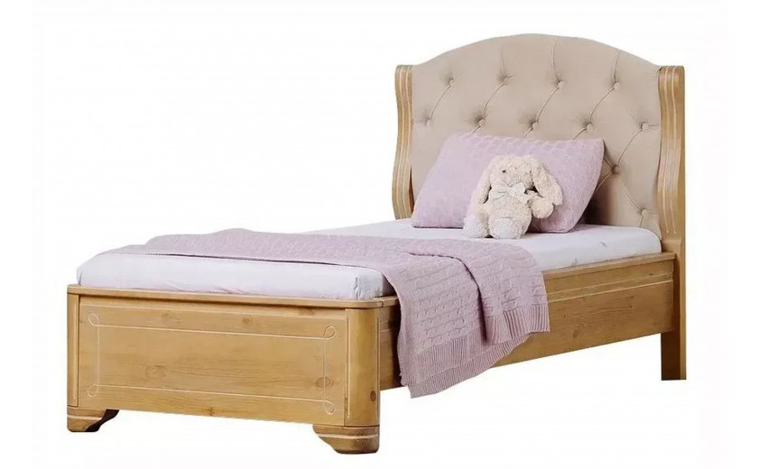 Кровать изготовлена из массива сосны. Цена указана в исполнении бесцветный лак. Стоимость изделия в другом цвете зависит от вида покрытия (бейц, эмаль) и типа обработки (эффекты старения – патина, скрэп, кракле). Коллекция мебели из сосны фабрики Timberica (Тимберика).