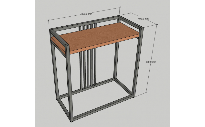 Консольный стол в стиле ЛОФТ из коллекции Loft Wood&Metal 11-01. Каркас выполнен из металлического профиля и окрашен в стандартном исполнении в черный цвет, также каркас может быть выкрашен в любой цвет по RAL, добавка к стоимости стола составит 10%. Столешница в стандартном исполнении выполнена из массива сосны, покрытого маслом премиум класса Varathane, также она может быть изготовлена из массива бука, дуба или ясеня, и покрыта эмалями, стоимость изделия при этом увеличится.