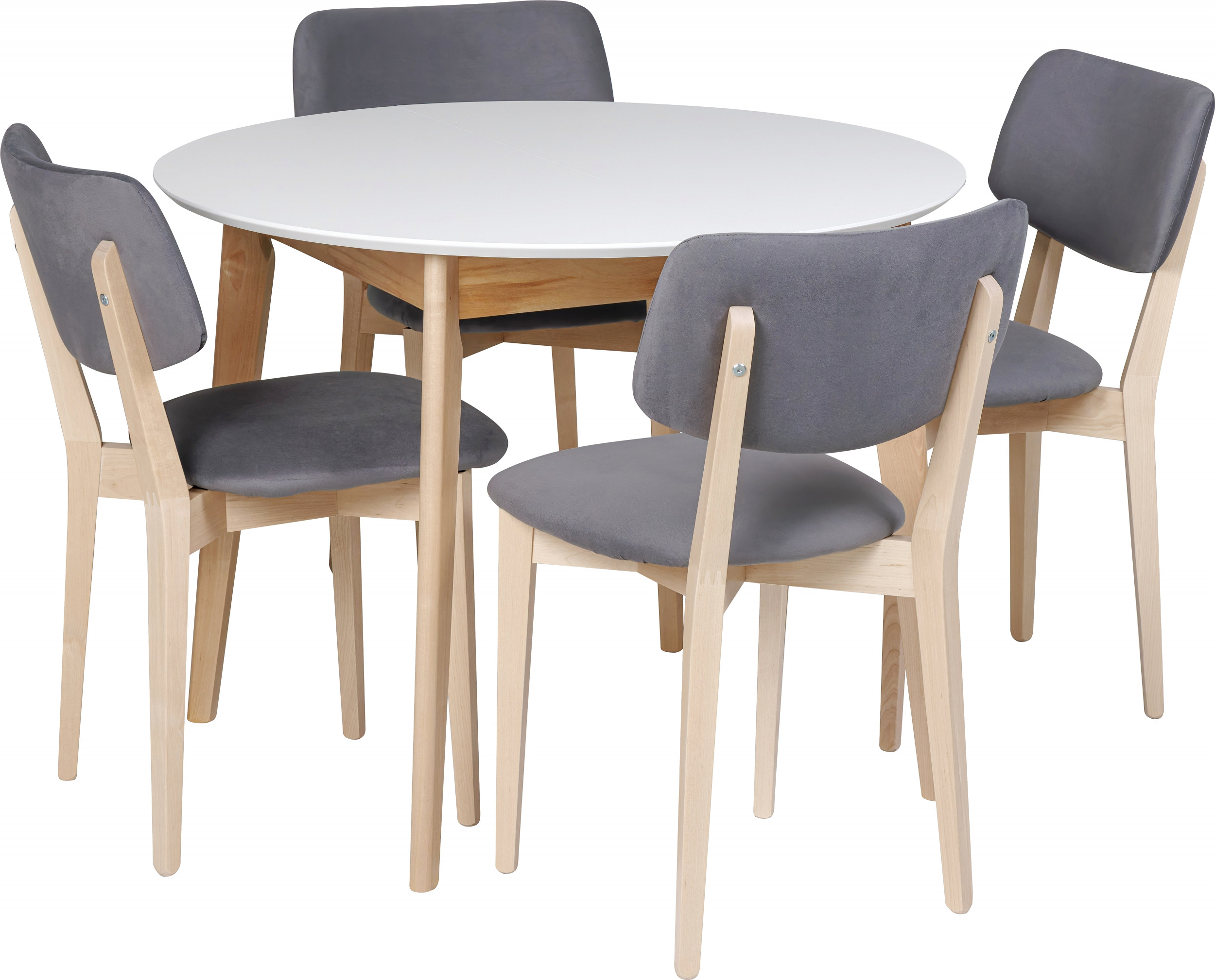 - Обеденная группа стол раздвижной Норден D100 Белый/Натуральный и 4 стула Мэти Натуральный/Серый велюр