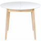 Стол изготовлен из массива березы, столешница выполнена из МДФ толщиной 19 мм. Столешница круглой формы, диаметром 100 сантиметров в сложенном виде, раскладывается до 130 сантиметров за счет вставки бабочки которая хранится в самом столе, механизм раздвижения на шариковых направляющих синхронного типа.
